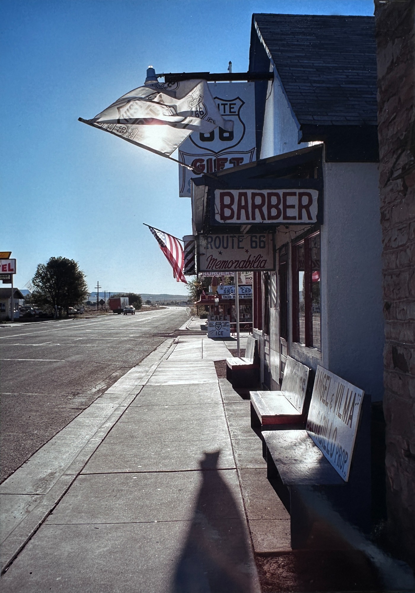 Im Sommer 2000 war ich für 3 Wochen in Kalifornien/USA und versuchte, das typisch kalifornische Leben einzufangen. Entlang der Route 66 fanden sich Relikte aus der amerikanischen Vergangenheit, die wirkten wie ein vor langer Zeit geträumter amerikanischer Traum. Die ständig präsente Sonne erzeugte diese harten Kontraste und die besondere Farbigkeit, mit denen ich dann gearbeitet habe.